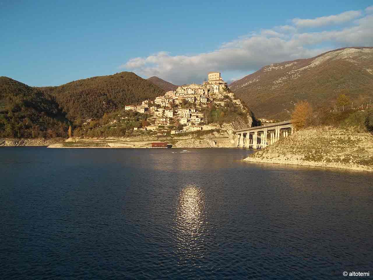 Non è un caso che il termine Lazio voglia in fondo dire “nascosto”: al suo interno sono celati borghi meravigliosi. Come Castel di Tora (RI), situato sul lago artificiale del Turano all’interno della Riserva naturale dei Monti Navegna e Cervia, del quale si hanno notizie fin dall’anno 1000. Conosciuto fino al 1864 come Castelvecchio, cambiò nome per riferirsi all’antico insediamento romano di Tora. Immerso tra boschi centenari, il pittoresco borgo tutto in pietra, legno e coppi in laterizio è di disegno medievale, come testimoniato dal mastio pentagonale (XI sec.) e dalle torrette. Da vedere il palazzo dei principi Del Drago (X-XVII secolo), la Chiesa di San Giovanni Evangelista, il Convento di Santa Anatolia e il piccolo borgo di Antuni, situato su una penisola fuori dall’abitato principale.