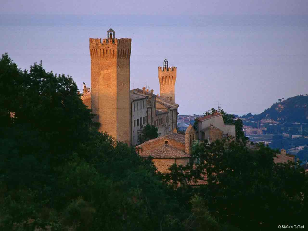 Nelle Marche incontriamo Moresco (FM) stretto intorno al suo Castello, esistente già nel 1083. Controversa l’origine del nome di questo borgo dalla struttura a ellissi. Alcuni lo considerano insediamento dei Saraceni, altri una rocca per contrastarli. È più probabile che derivi dalla famiglia dei Mori o dal termine “morro” che indica un luogo sassoso. A lungo fu avamposto di Fermo: la caratteristica torre eptagonale (XII sec.) domina infatti sulla valle dell’Aso con i suoi 25 metri e fa coppia con la torre dell’orologio (XIV sec.) che sovrasta la porta d’accesso. Nel ‘500, periodo di massimo splendore, Moresco si arricchisce di chiese e opere d’arte. Da vedere la chiesa parrocchiale di San Lorenzo e quelle della Madonna dell’Olmo e della Madonna della Salute, con un affresco di Vincenzo Pagani. Sua anche la grande pala d’altare, custodita con altri tesori nel Palazzo comunale.
