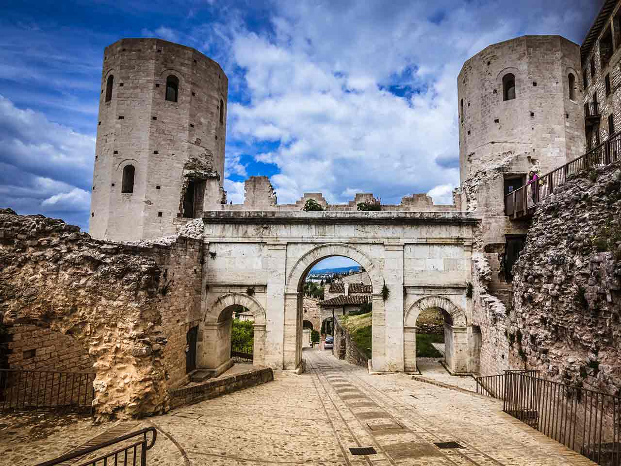 Porta Consolare (I a. C.), Porta Urbica con le mura augustee, Porta di Venere con le torri dodecagonali dedicate al poeta latino Properzio, Porta dell’Arce o dei Cappuccini: ci sono tanti modi per entrare a Spello (PG)! E tanti siti d’interesse. Del resto, la città dell’Umbria affacciata sulla Via Flaminia era già nota ai Romani per la sua bellezza. La Collegiata di Santa Maria Maggiore ospita affreschi del Pinturicchio nella cappella Baglioni (feudatari del centro arroccato su un contrafforte del Monte Subasio). Dello stesso autore la Madonna in trono e Santi nella Chiesa di Sant’Andrea Apostolo. Notevole anche la Cappella Tega con gli affreschi dell’Alunno. Suggestive tutte le stradine e le case di pietra, ancor di più quando si tingono di mille colori durante le famose Infiorate.
