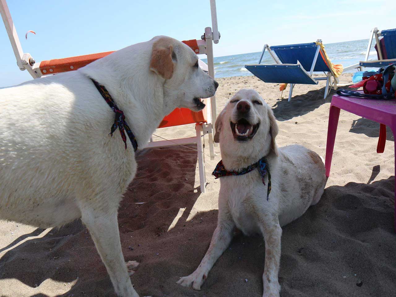 Cani di tutte le taglie possono divertirsi e anche fare il bagno al Bagno Tamerici Dog a Rosolina (RO). Lo stabilimento offre agli amici del Ranocchio lo sconto del 10% su ombrellone e lettini eccetto festivi.