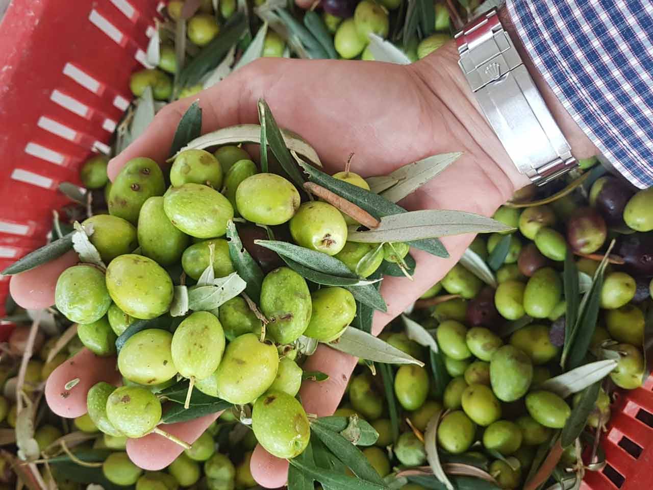Toccare con mano le olive appena raccolte, apprezzarne la consistenza con le dita.