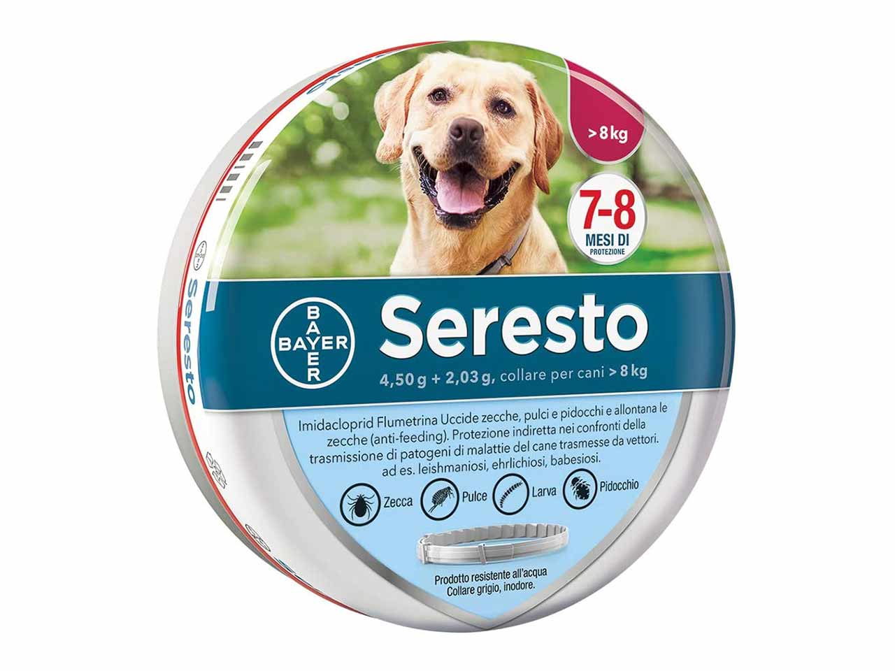 I collari proteggono il cane per 4-10 mesi. L’efficacia diminuisce a seconda della distanza dal prodotto, cioè la testa e il collo saranno più protetti rispetto alle zampe. In commercio ne trovi tanti, tra i quali Seresto Collare Cani Medio/Grande (30,76 euro).