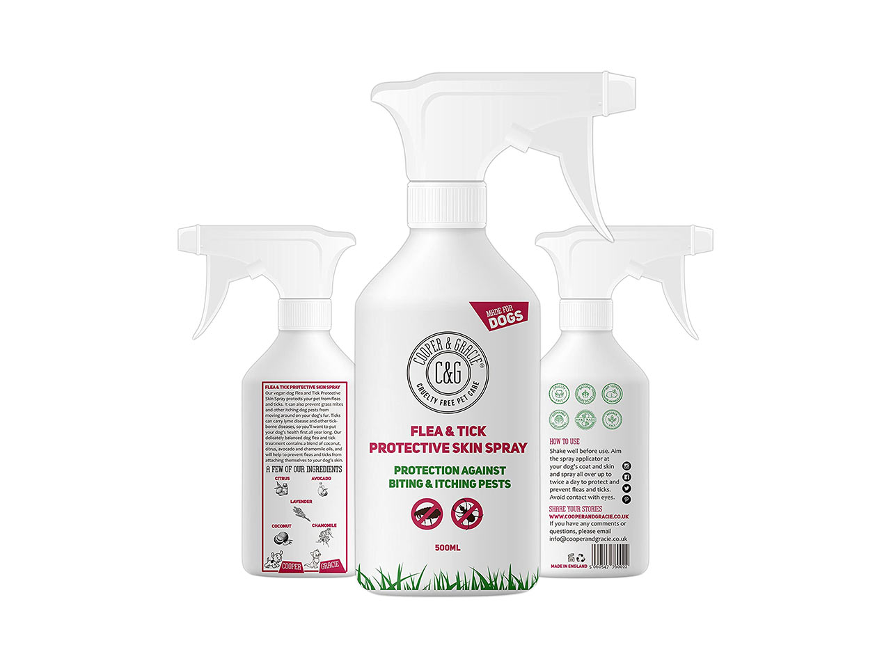 Gli spray sono prodotti pensati soprattutto per gli ambienti o oggetti che usa il tuo cane, ad esempio la cuccia dove dorme o i mobili di casa. Possono durare mesi o settimane a seconda della marca che scegli. Una buona soluzione potrebbe essere Cooper And Gracie C&G Cruelty free Pet Care Spray (15,99 euro).