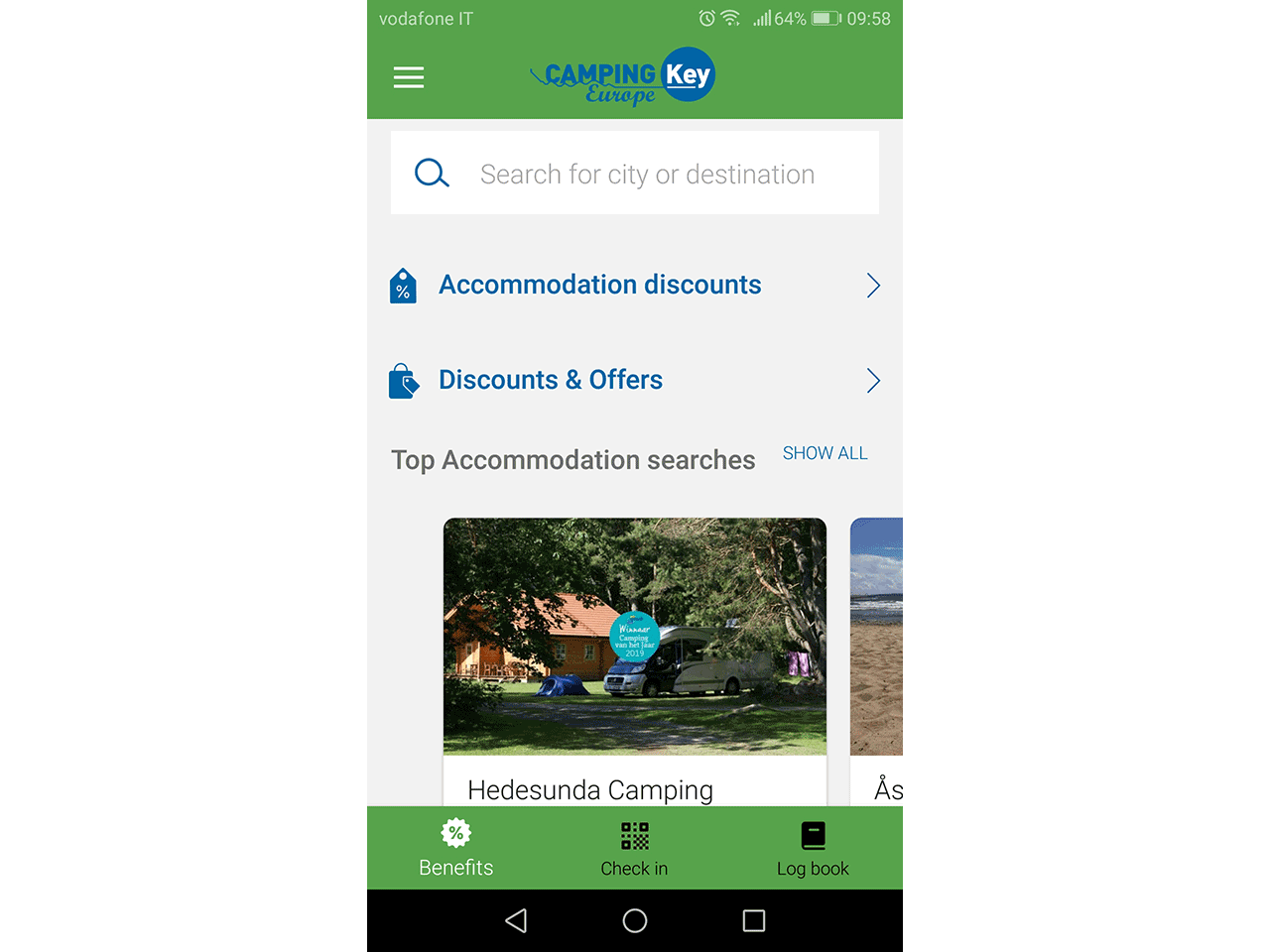 Le offerte indicate sulla home page dell’app My Camping Key e nella sezione “Discounts & Offers” si riferiscono a sconti per aziende, prodotti, zoo, acquari, parchi divertimento, traghetti e shopping in SVEZIA, VALIDI ANCHE PER LE CARD CKE EMESSE DAL PLEINAIRCLUB.