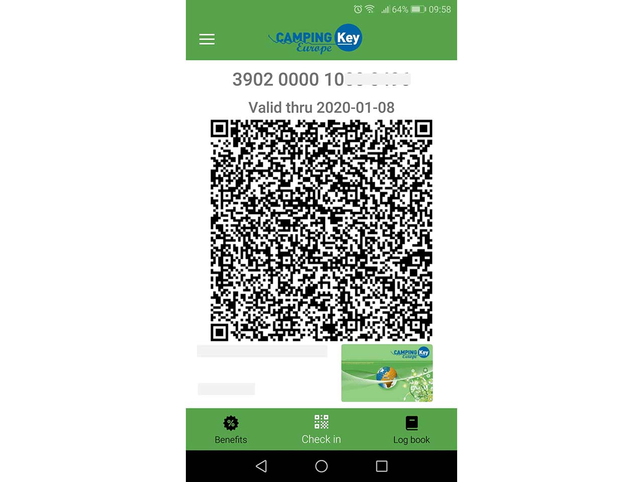 Per visualizzare la tessera CKE digitale (QR Code) in fase di check-in nei campeggi, clicca sull’icona “Check in” al centro della fascia verde inferiore.