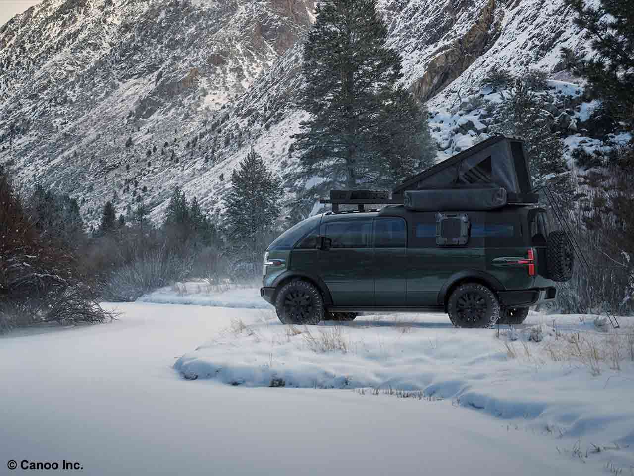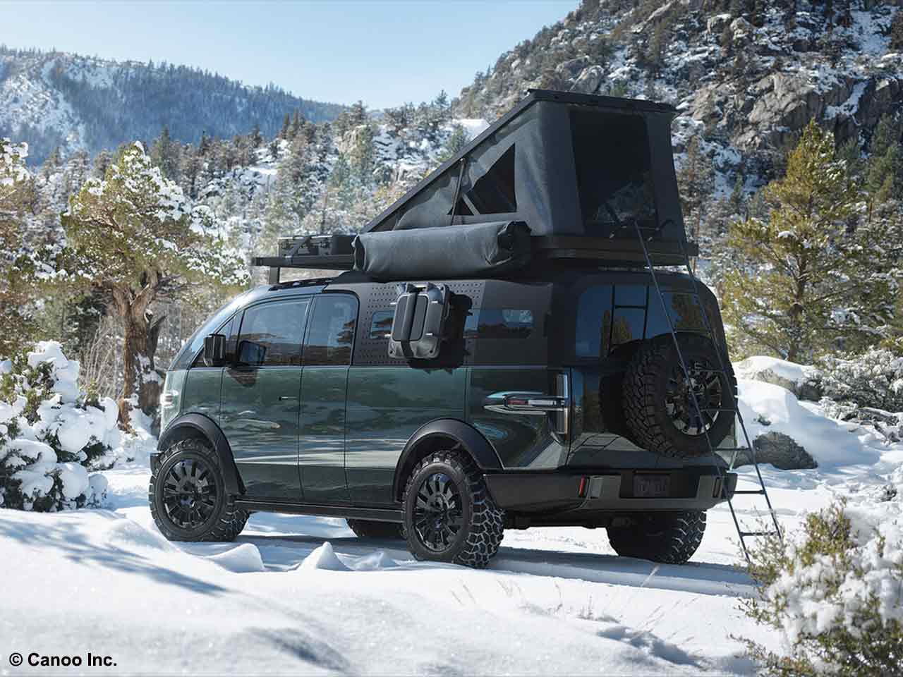 Ciò che rende davvero straordinario il nuovo pickup truck elettrico di Canoo Inc. è la sua straordinaria versatilità e modularità. Al veicolo può infatti essere aggiunto un guscio di copertura per il pianale posteriore e diverse altre dotazioni che lo trasformano in un camper di tutto rispetto, come una tenda a soffietto da montare sul tettuccio e un porta bici.