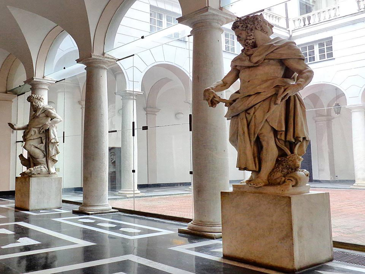 Le statue cinquecentesche di Giove e Giano custodiscono l’ingresso di Palazzo Bianco, la più importante pinacoteca di Genova. Nelle sue sale sono esposte opere dal XV al XVII secolo, tra le quali dipinti di Caravaggio, Murillo e Rubens.