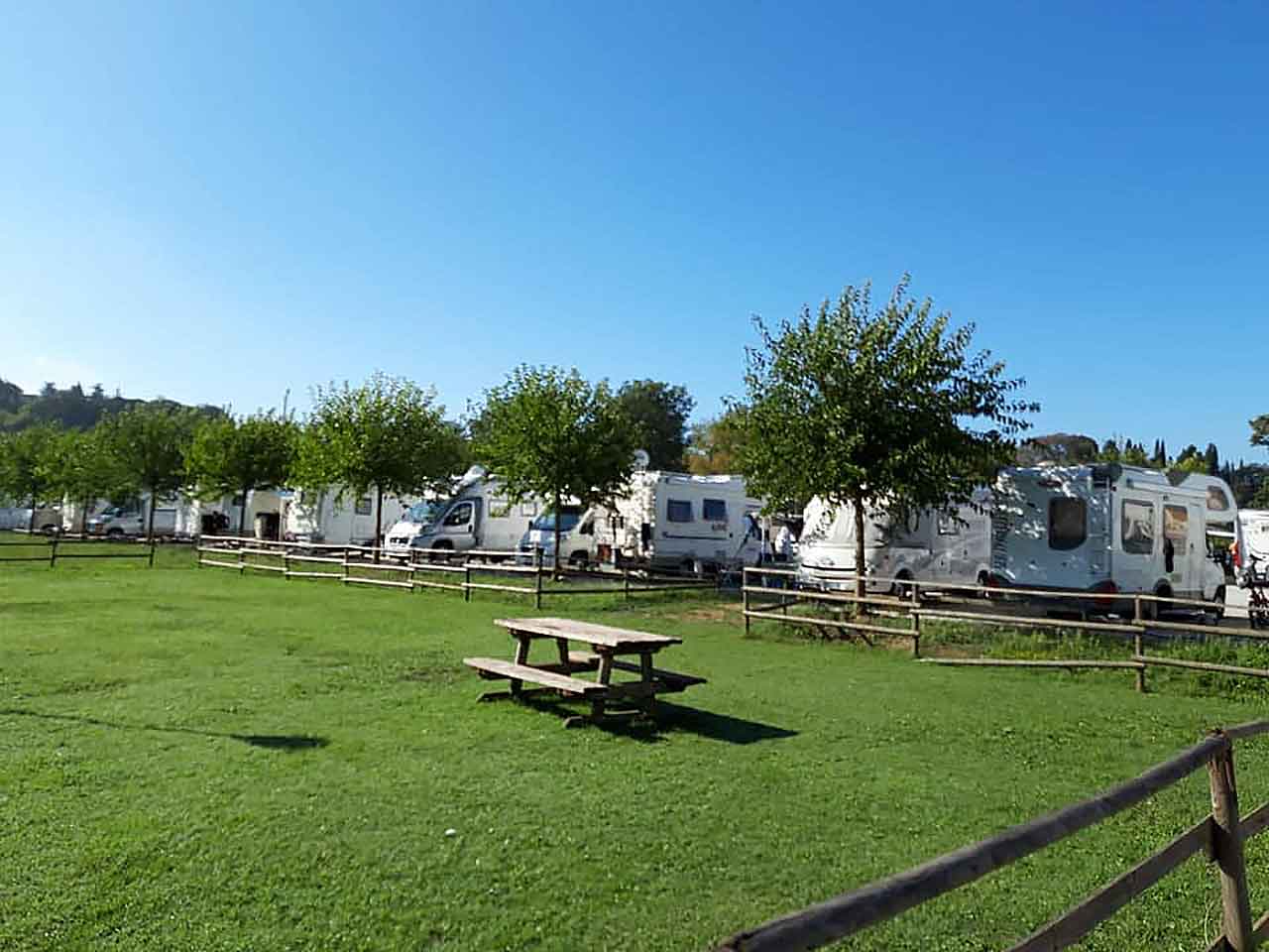 A Monteriggioni puntiamo dritti verso l’area camper comunale La Posta, a quattrocento metri dalle mura. Fondato dalla Repubblica di Siena come avamposto di difesa contro la rivale Firenze, il borgo si erge maestoso sulla sommità di una dolce collina coltivata a vigneti e oliveti ed è completamente circondato dalle mura.