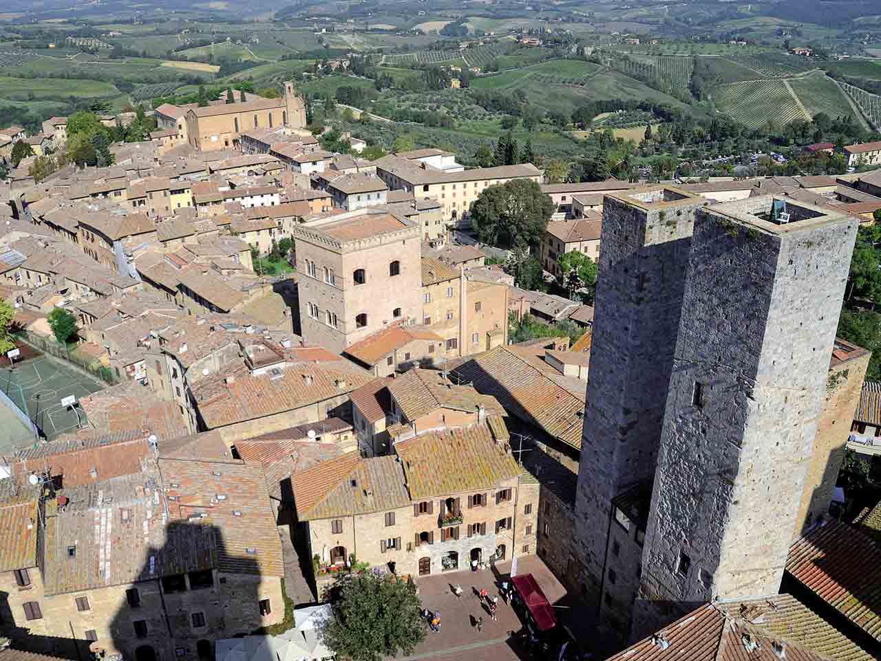 Tratto distintivo sono le torri che svettano oltre i tetti delle case – nel XIV secolo se ne contavano settantadue, oggi ne sono rimaste tredici – e la rendono riconoscibile anche da lontano: non a caso è stata soprannominata la Manhattan del Medioevo.