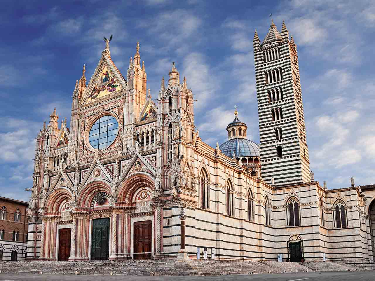 Ci dirigiamo verso il duomo. Al suo interno è visibile un meraviglioso pavimento marmoreo; innumerevoli sono le opere da vedere, fra cui la Libreria Piccolomini e alcuni lavori del Pinturicchio e di Michelangelo.