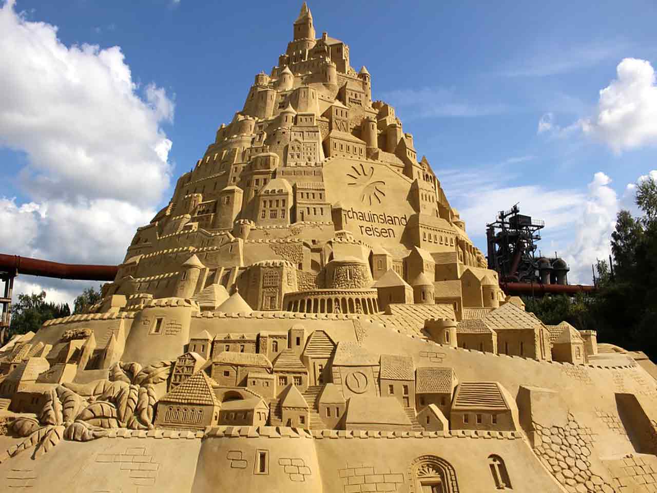Il sogno di ogni bambino: trovarsi di fronte al castello di sabbia più alto del mondo. La misurazione dei giudici del Guinness World Record ha certificato il primo posto nella speciale classifica dei castelli di sabbia più alti al mondo: un titolo passato da Rio de Janeiro a Miami poi in India e ora in Germania, ottenuto grazie ad un lungo lavoro di progettazione che lo ha reso non solo maestoso ma anche incredibilmente ricco di dettagli. 11.000 tonnellate di sabbia per creare questo spettacolare nuovo record per il castello di sabbia alto 17,66 metri. Il castello è stato costruito utilizzando solo sabbia e acqua – nessun additivo e nessuna struttura di supporto interno. Il diametro della base circolare misura circa 26 metri.