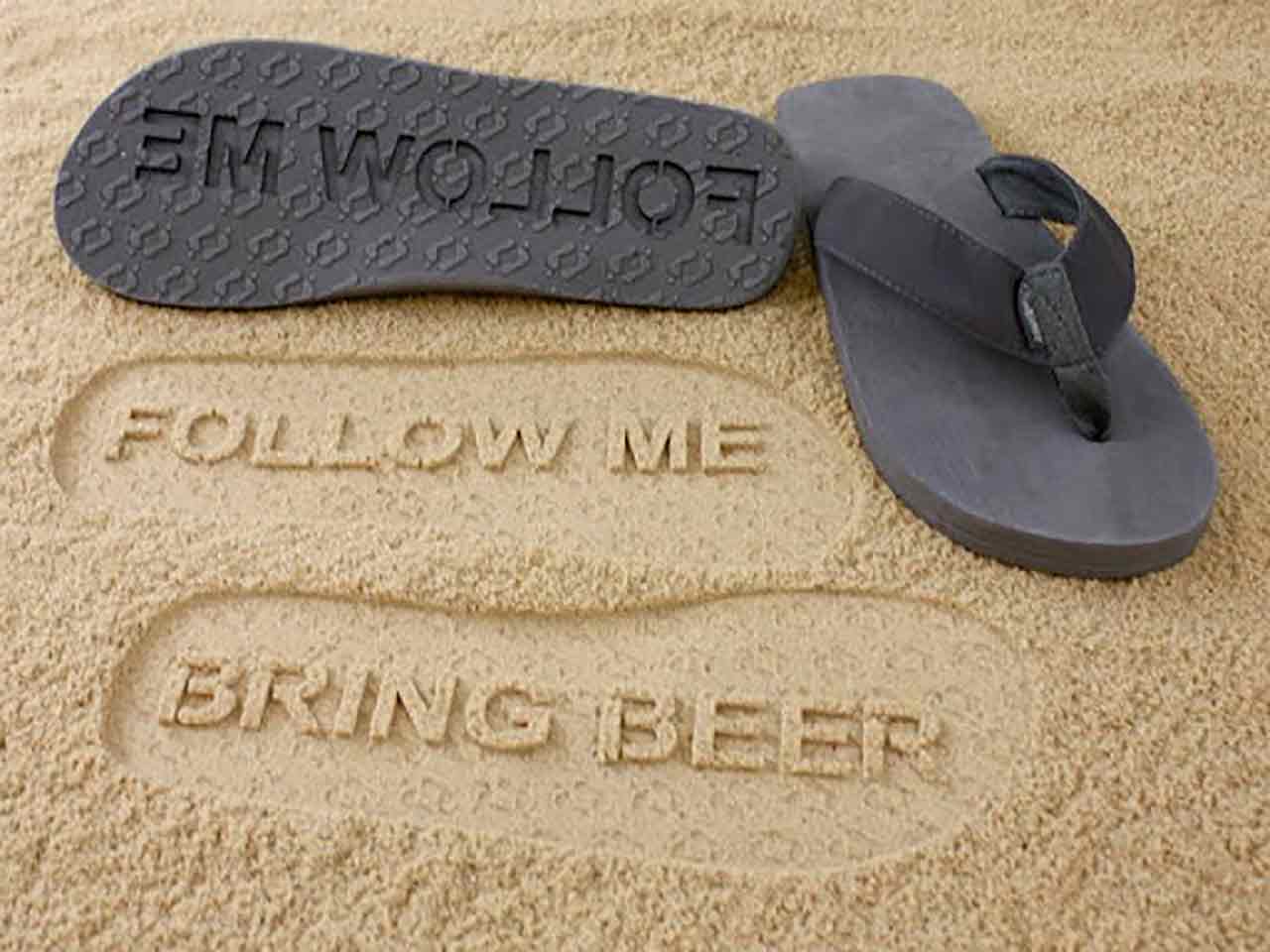 I classici modelli delle infradito ti sembrano ormai tutti uguali? Provane uno più estremo: il nuovo gadget per l’estate sono i sandali con suola in erba sintetica, per un effetto relax costante e garantito anche quando cammini sull’asfalto cittadino. Oppure, grazie alla suola incisa, puoi lasciare dietro i tuoi passi un messaggio sulla sabbia: “Follow me”, seguimi. Troppo romantico? Aspetta di vedere il passo successivo: “Bring beer”, porta la birra.