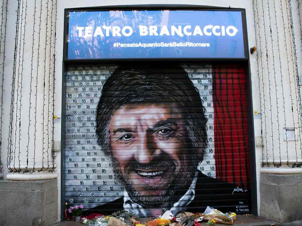 Un grande ritratto di Gigi Proietti è apparso anche sulla serranda del Teatro Brancaccio, da lui diretto dal 2001 al 2007. Lo street artist Maupal ha realizzato il volto di Gigi con il suo sorriso inconfondibile, circondato da tanti 18, numero che fa riferimento a una sua famosa barzelletta.