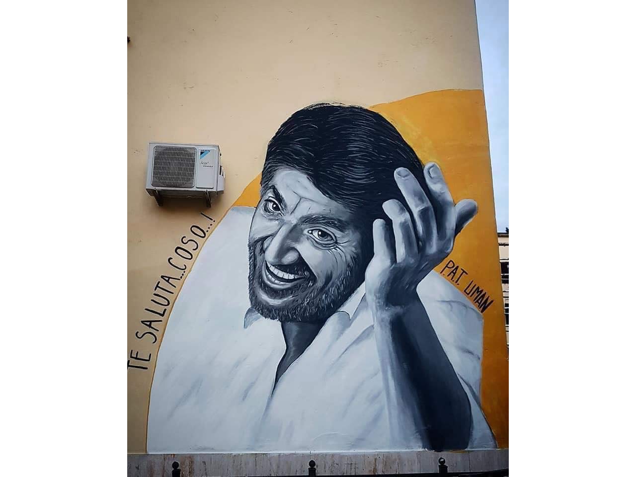 Un ritratto del mattatore romano è apparso anche su un muro del Trullo. Il volto giocoso di Proietti in una delle sue pose più frequenti e la frase: “Te saluta coso” che regala a chiunque passi un sorriso. A realizzarlo PaT (Pittori anonimi Trullo) e Uman art, ossia Mario D’Amico e Manuela Merlo.
