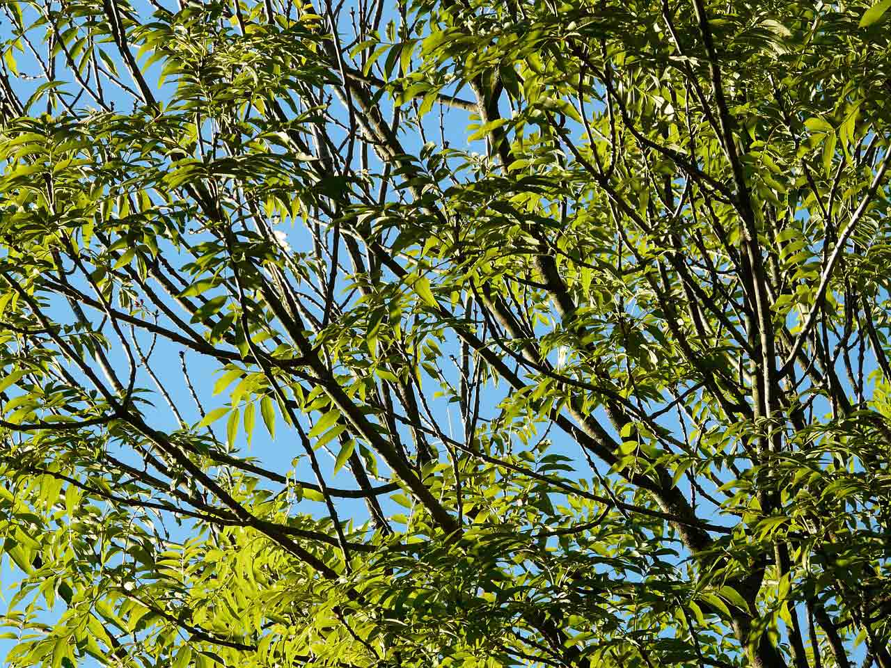 Ecco un altro gigante verde che può arrivare a 40 metri: il Frassino comune (Fraxinus excelsior). La sua chioma, tondeggiante e molto ramificata, ha un fogliame fitto, decorativo e di colore verde chiaro. Assorbe 2.800 kg di CO2.