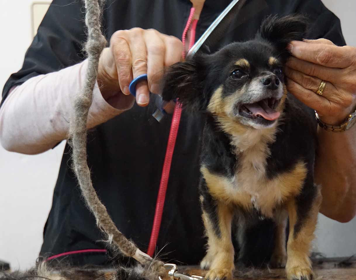 Gli unici cani che necessitano di tosatura sono quelli con pelo abbondante e a crescita continua. Per gli altri, come i nostri border e la shetland, basta una spazzolata per favorire il ricambio. Se il mantello è cortissimo come quello della meticcia Tilli e della segugia maremmana Bella si usa un apposito guanto. Invece Iside si prepara al caldo con lo stripping, tipica toelettatura del westie (il pelo viene strippato con un apposito coltellino).