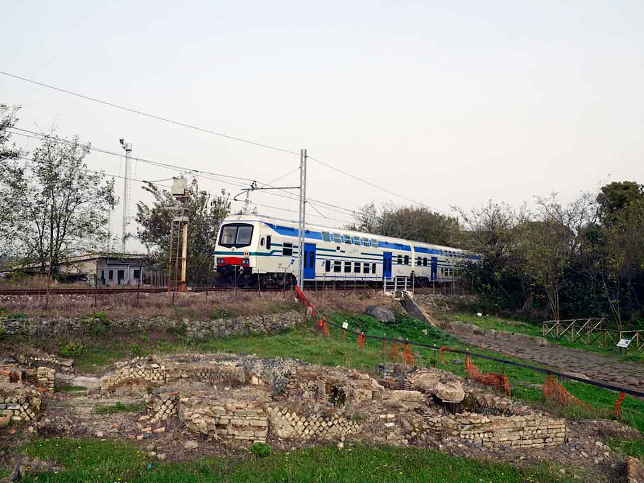 Arrivati con il treno a Santa Maria delle Mole, frazione del comune di Marino, subito veniamo accolti dai ruderi di un edificio termale. Iniziamo il percorso, perfettamente rettilineo e senza alcuna possibilità di errore, fra recinzioni agricole e muretti a secco, con la vista che spazia fino ai Castelli Romani. Occorre prestare attenzione ad alcuni attraversamenti di viabilità ordinaria.