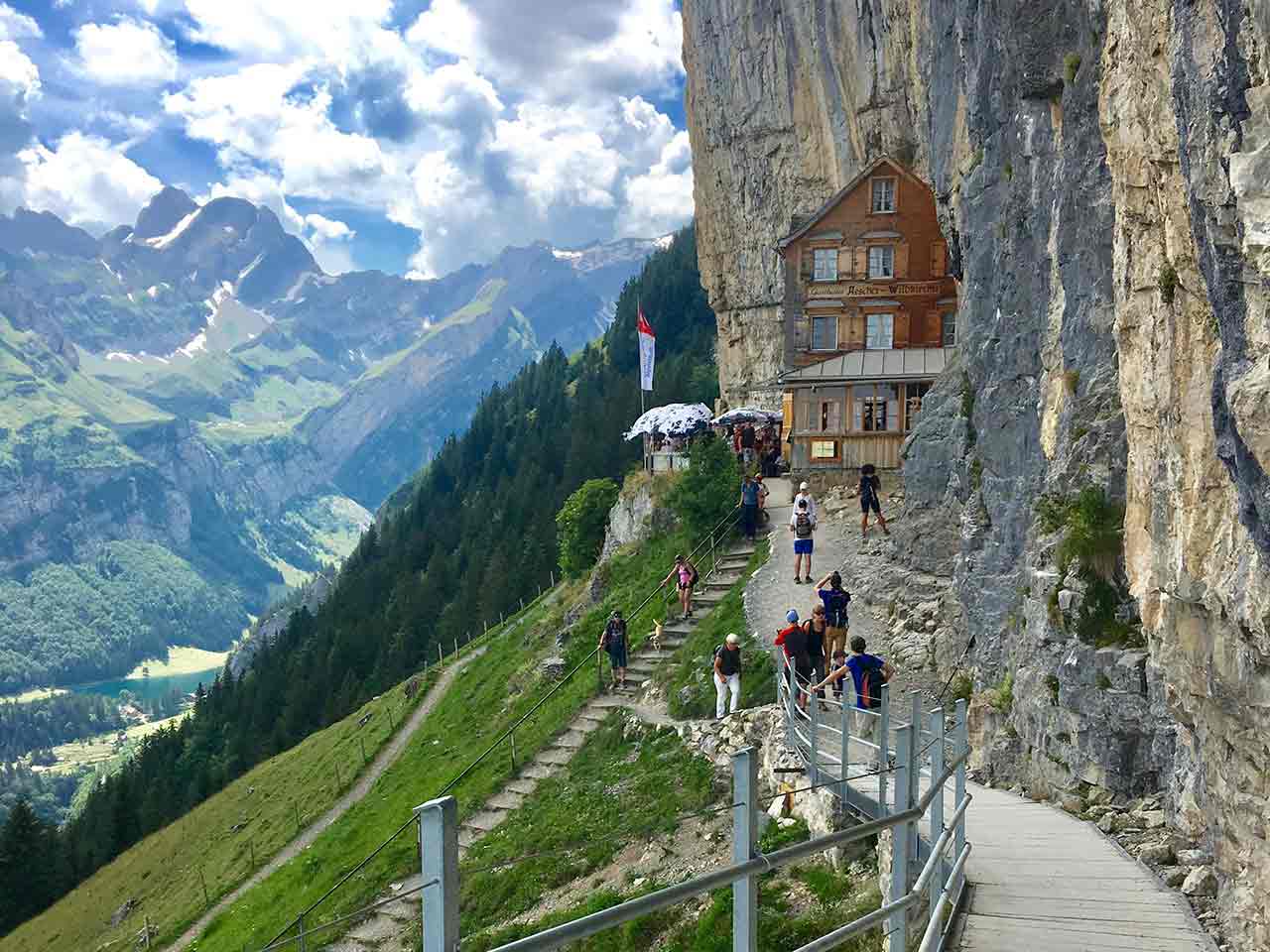 Una spettacolare e particolarissima locanda incastrata tra le rocce, che troverai lungo il cammino della tua passeggiata da Wasserauen a Ebenalp. Facile da raggiungere anche con bambini (usando la funivia) e punto di partenza per altre camminate. Panorama e relax.
