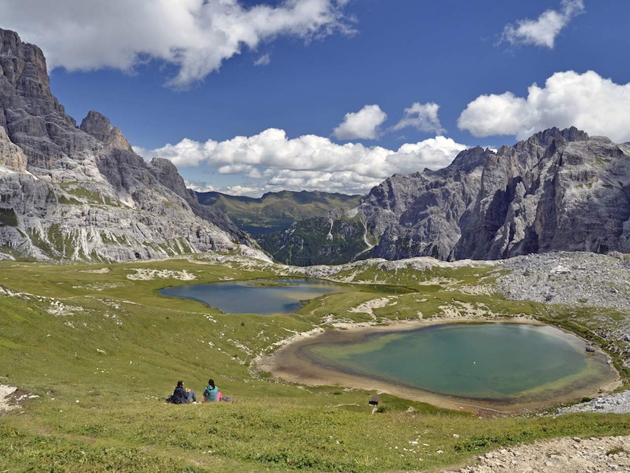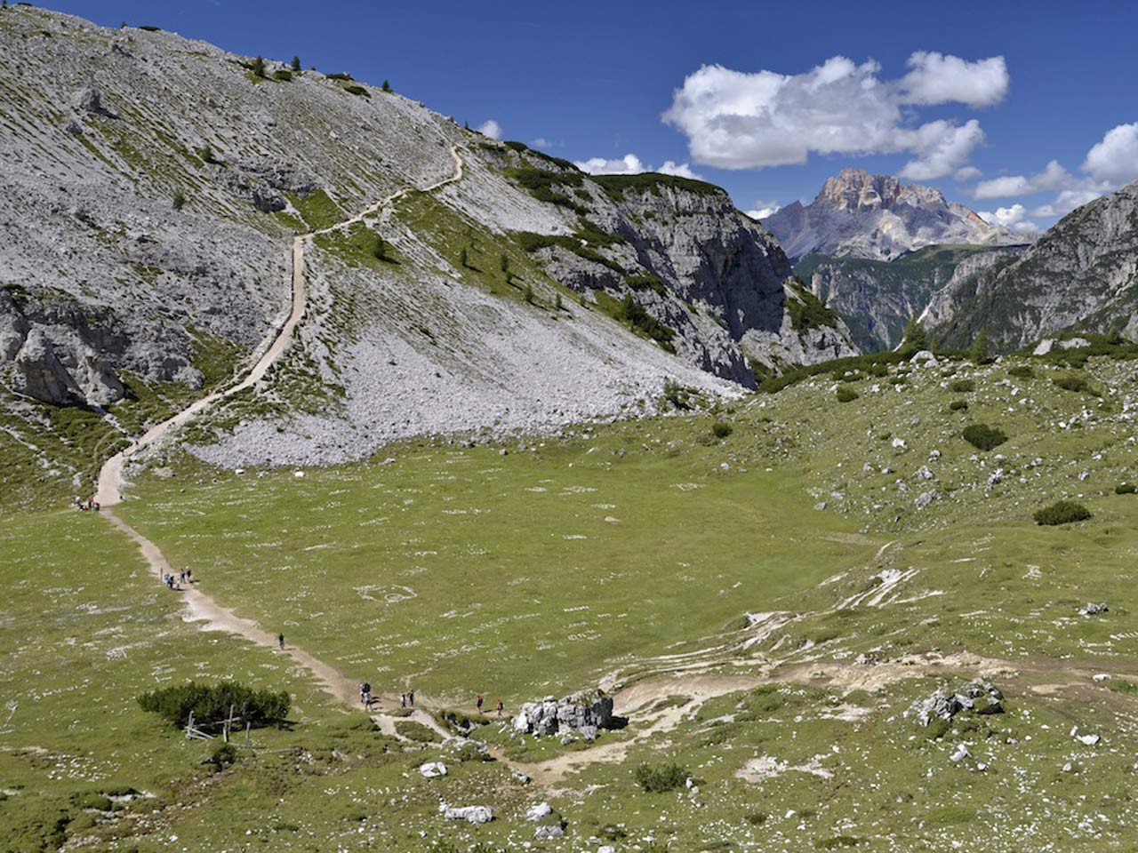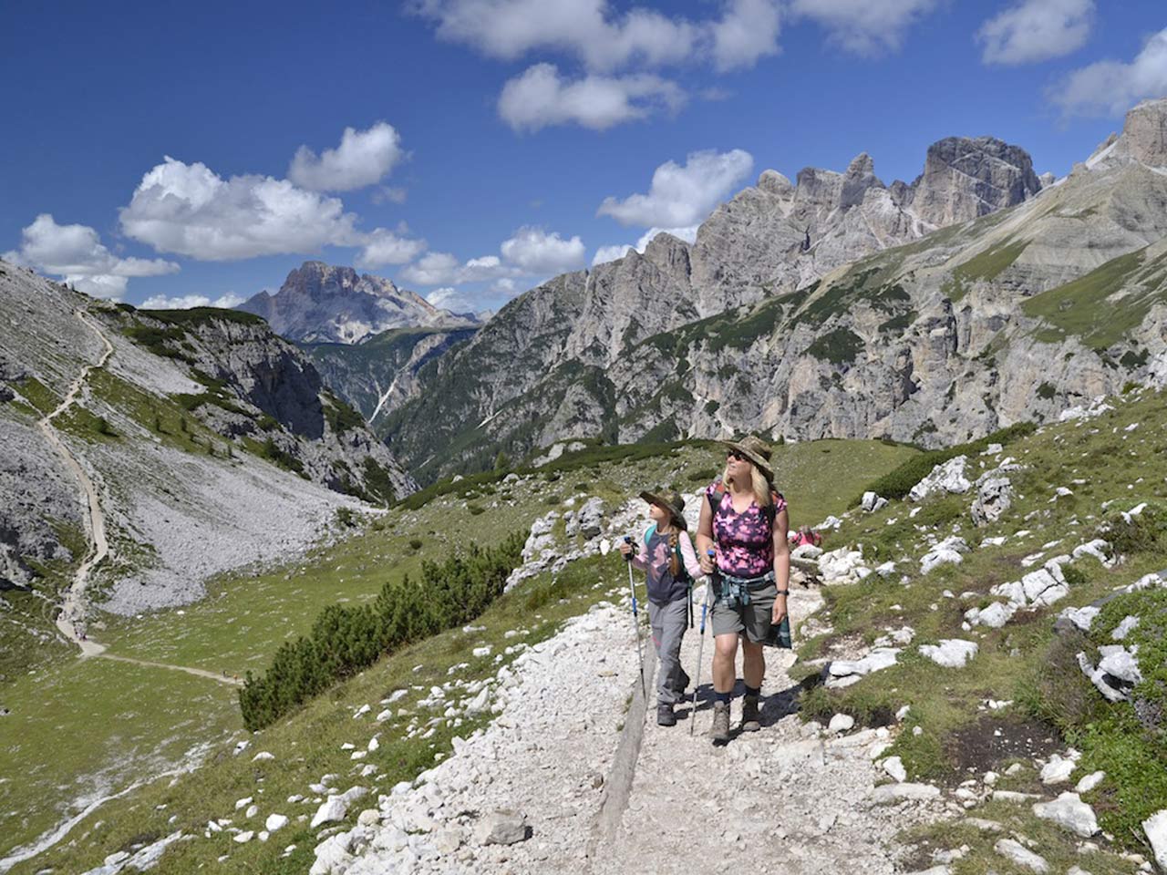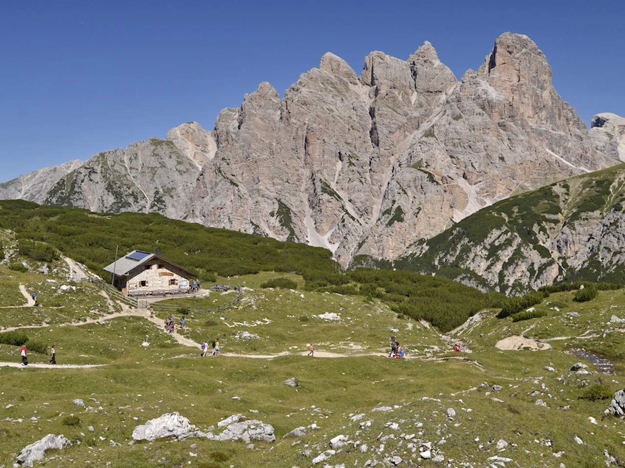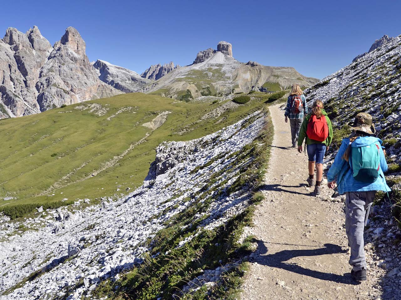 Al confine fra due regioni alpine, il profilo più famoso delle Dolomiti si presta a una spettacolare escursione, in gran parte in discesa e adatta a grandi e piccini che abbiano voglia di camminare.