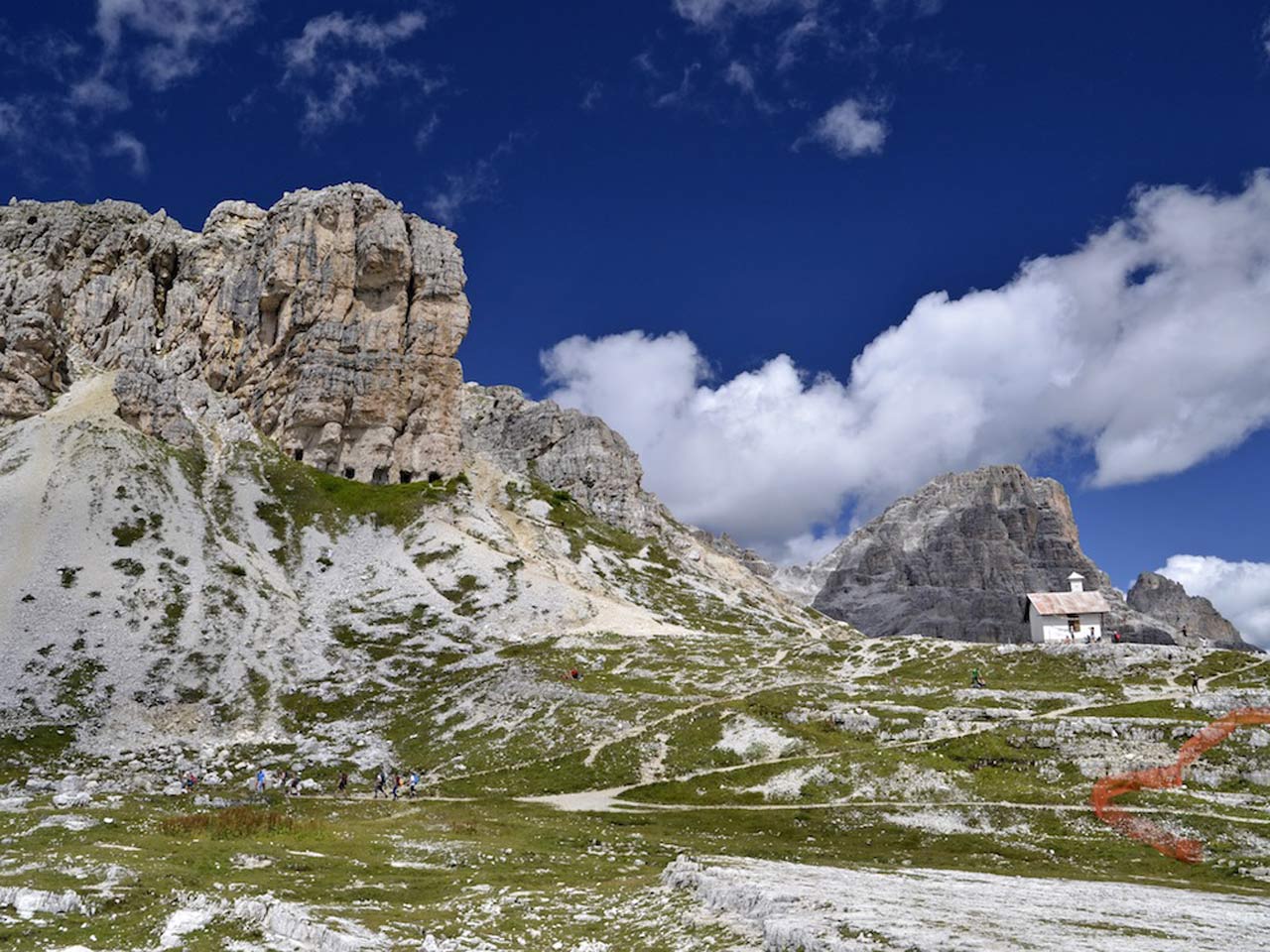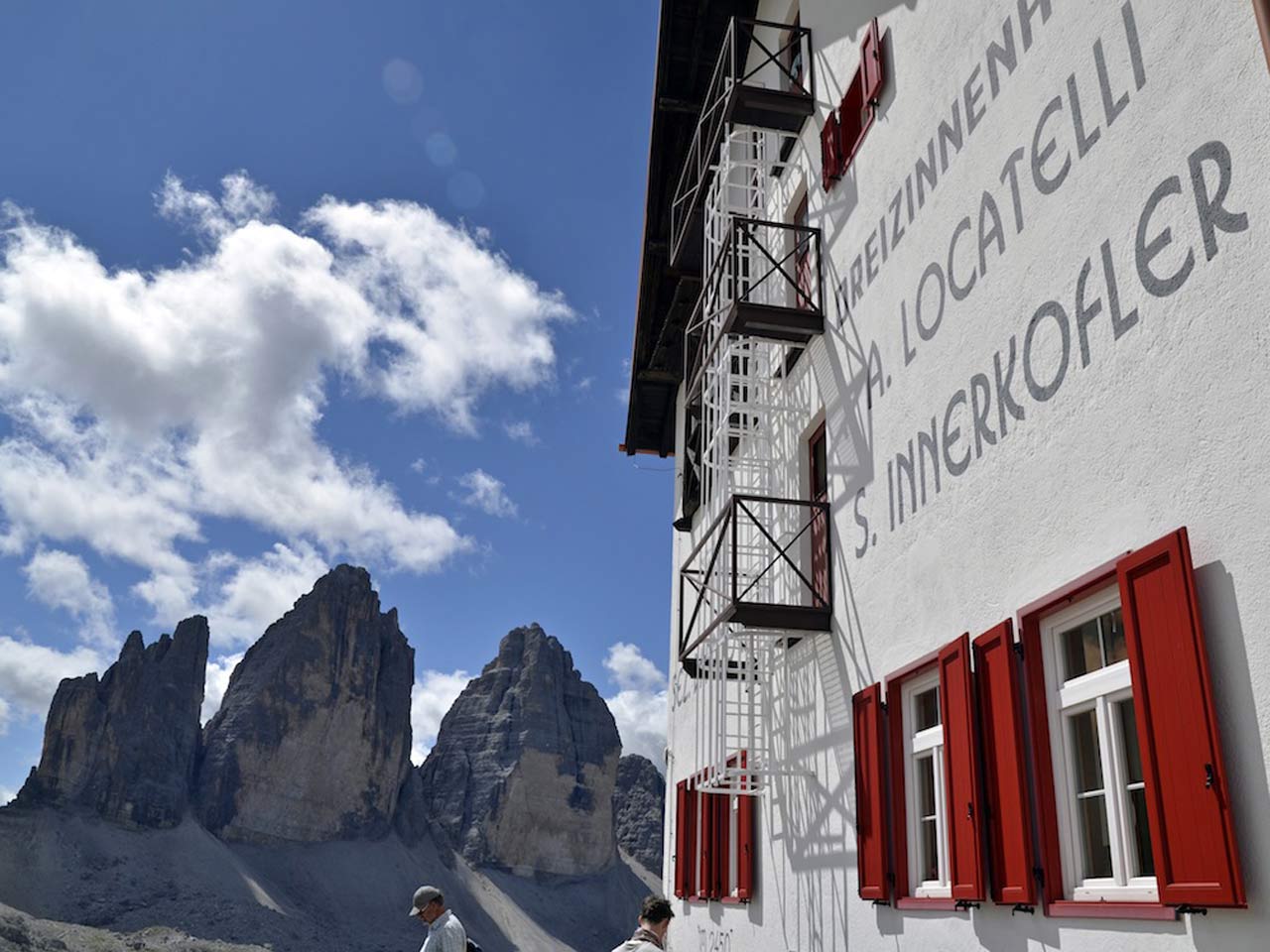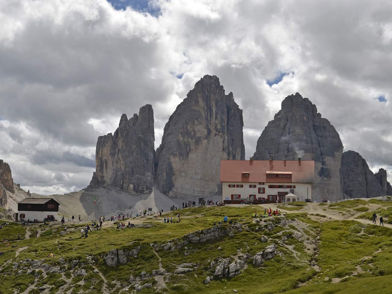 Il tempo di una sosta ristoratrice presso la tranquilla Malga Langalm e subito il sentiero, sempre largo ma con un fondo di brecciolino scivoloso, ci fa perdere quota. Attraversata la conca prativa del Piano di Rienza, affrontiamo la faticosa salita a svolte che ci da finalmente accesso all’affollato Rifugio Locatelli, con splendido panorama sugli svettanti monoliti, capaci di esprimere tutto il fascino ruvido di queste montagne.