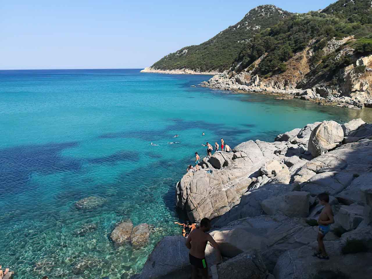 Con la navetta dell’area sosta (compresa nel prezzo) andiamo alla spiaggia Costa Corallina: anche questa niente male!