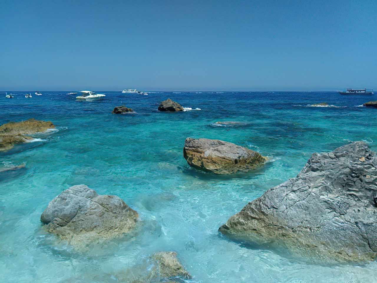 Sosta di un’ora a Cala Luna, due ore sulla Spiaggia dei Gabbiani, un’ora a Cala Biriola e in più, a richiesta, qualche tuffo in mare aperto vicino a Cala Goloritzè e alle Piscine di Venere.