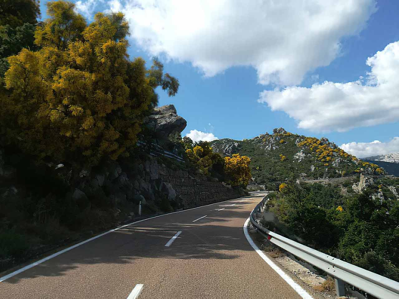 Destinazione Lido di Orrì, attraverso il Passo della Genna Silana (il valico del Supramonte). Si tratta di una strada di montagna impegnativa, ma con panorami mozzafiato e ginestre fiorite: un vero spettacolo! Facciamo sosta in un’azienda agricola per prendere un po’ di formaggio e poi arriviamo all’area sosta Tanca di Orrì (18 €/gg camper + 4 persone). Ci godiamo il mare e la spiaggia, che una volta tanto sono proprio a pochi passi dal camper.